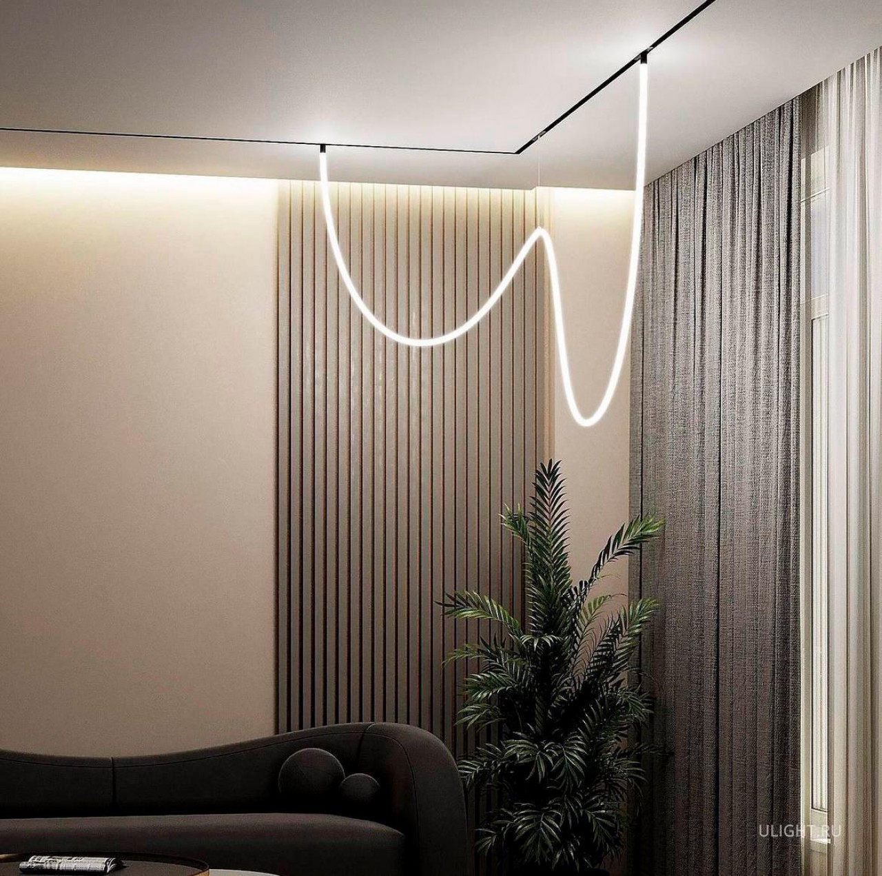 Серия имеет довольно неординарный дизайн, выполненный в духе современных тенденций. Светодиодная инсталляция небрежно свисающая с трека, придает воздушности. Светильник станет акцентом интерьера. Отличается большой длиной: 1500, 3500, 5000 мм.