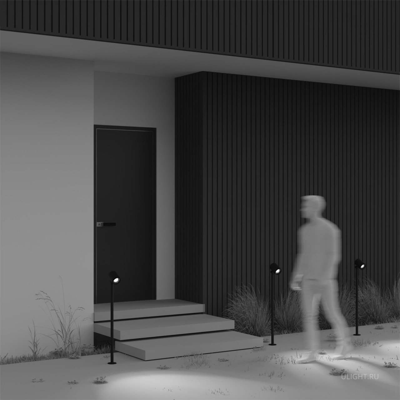 Материал арматуры - алюминий, цвет - черный. LED-источник света с цветовой температурой 3000К. Мощность 12Вт. Повышенная степень защиты от пыли и влаги IP65. Два размера. Поворотный механизм плафонов для регулировки направления светового потока.
