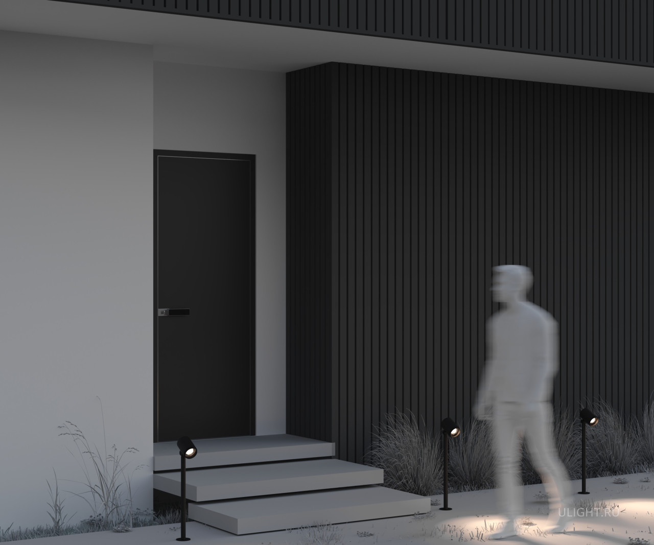 Материал арматуры - алюминий, цвет - черный. LED-источник света с цветовой температурой 3000К. Мощность 12Вт. Повышенная степень защиты от пыли и влаги IP65. Два размера. Поворотный механизм плафонов для регулировки направления светового потока.