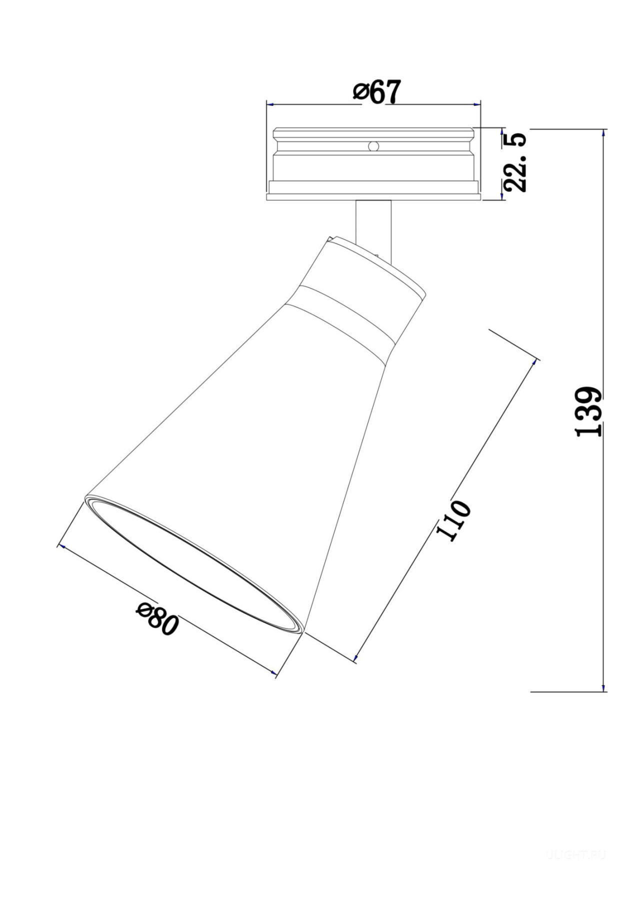 Диаметр монтажного отверстия встраиваемого светильника: 70
