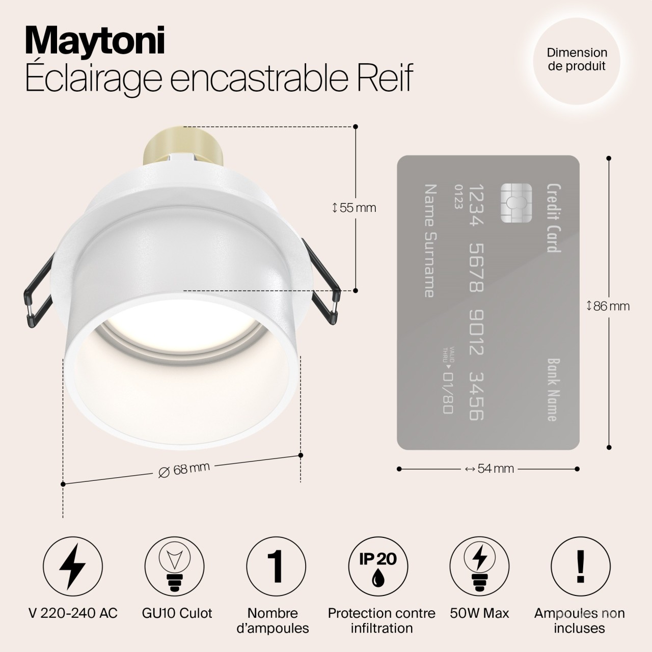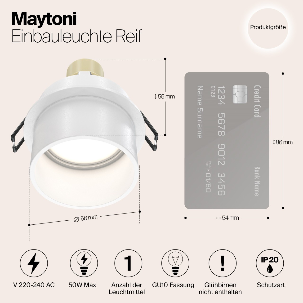 Диаметр монтажного отверстия встраиваемого светильника: 65