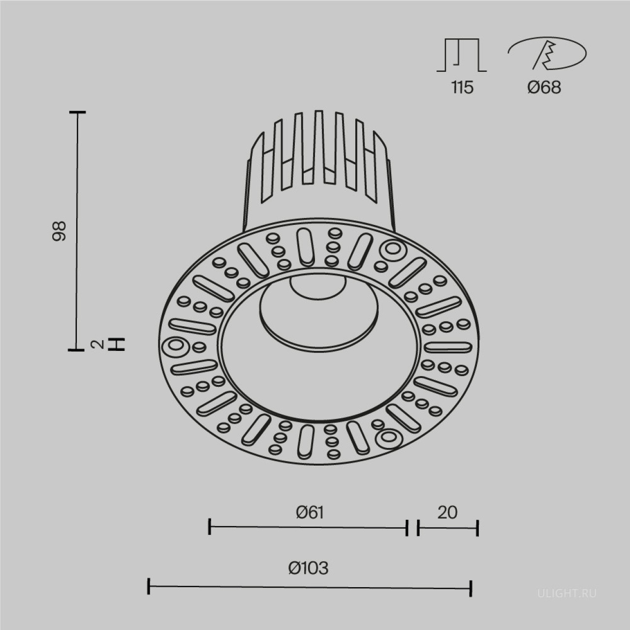 Глубина монтажного отверстия встраиваемого светильника: 115