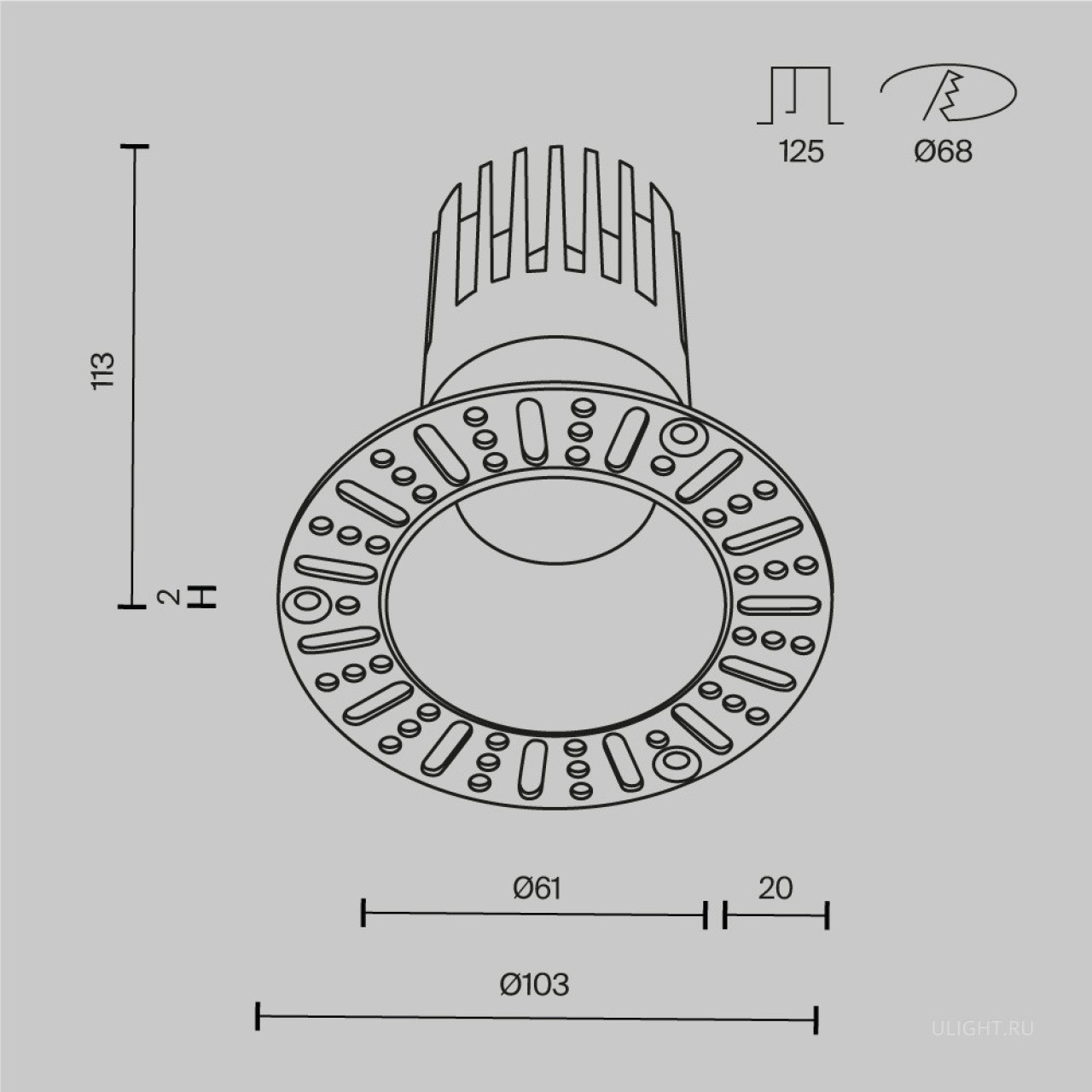 Глубина монтажного отверстия встраиваемого светильника: 125