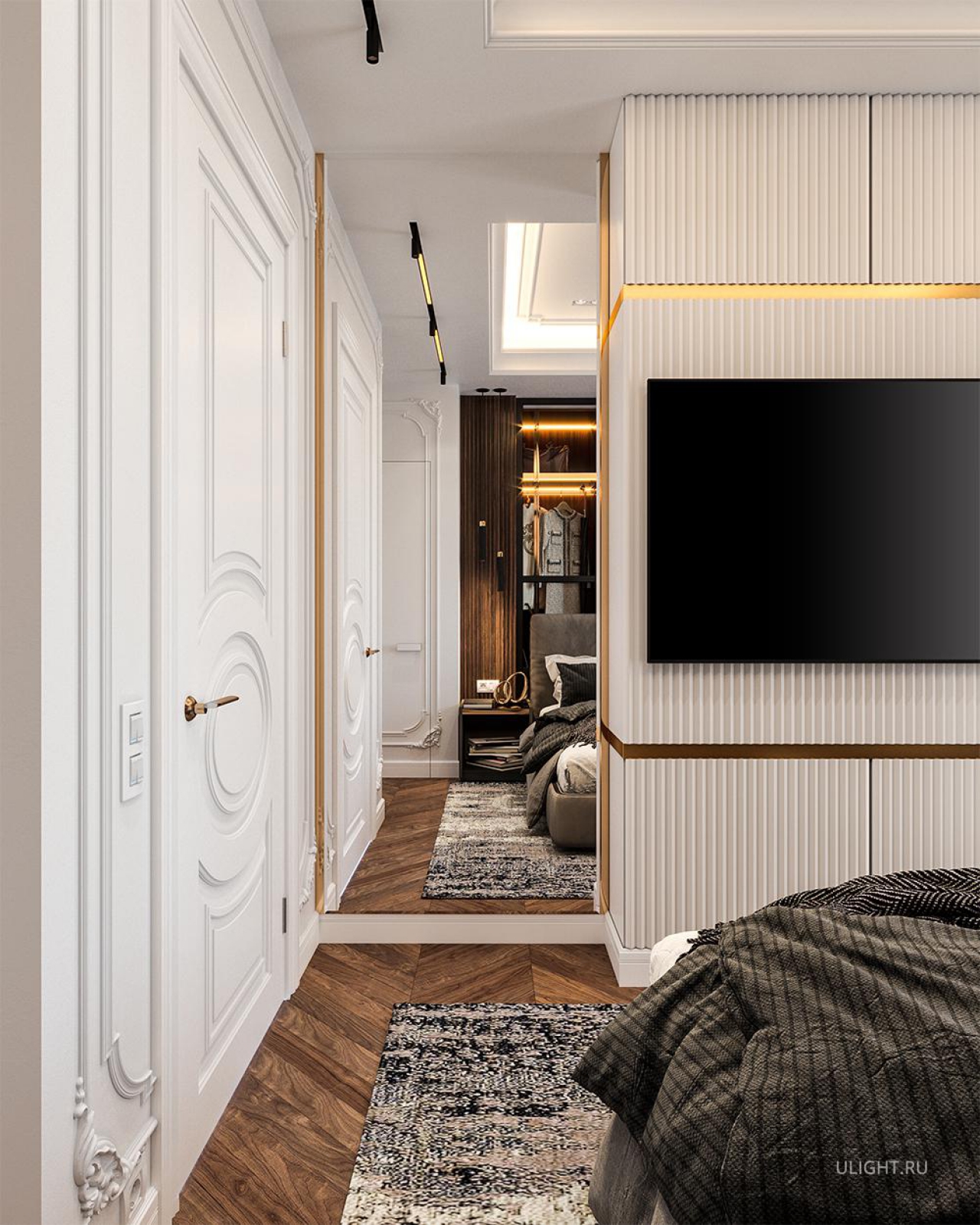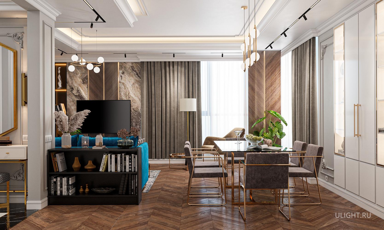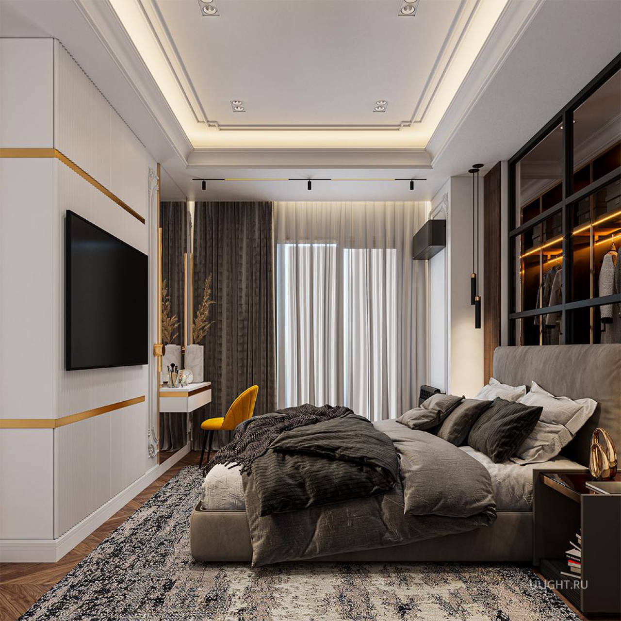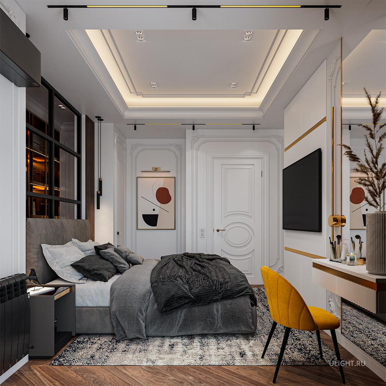 Система освещения OneLine – отличный вариант для создания основного и локального света в квартире. Система позволяет комбинировать разновидные источники света на одном треке. В проекте студии IntEx Design используются магнитные светильники серии LF и Tube.