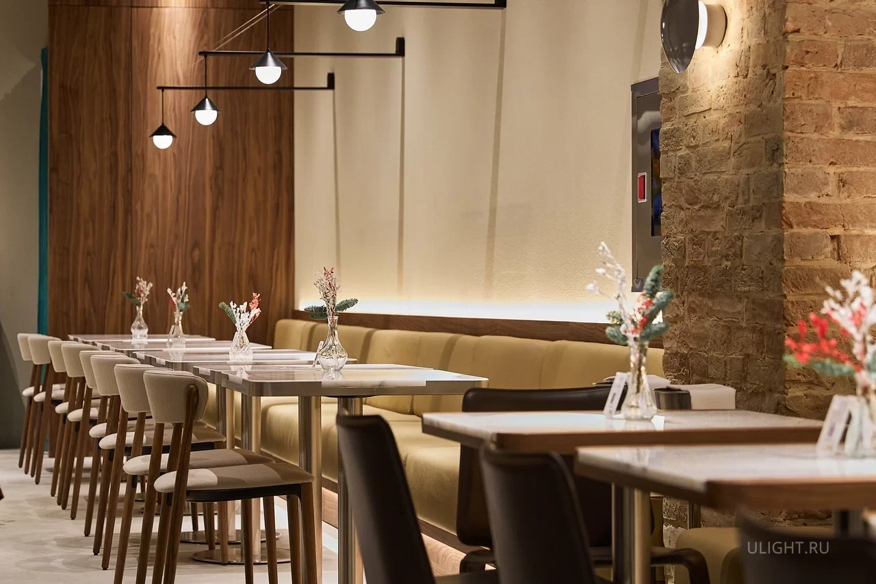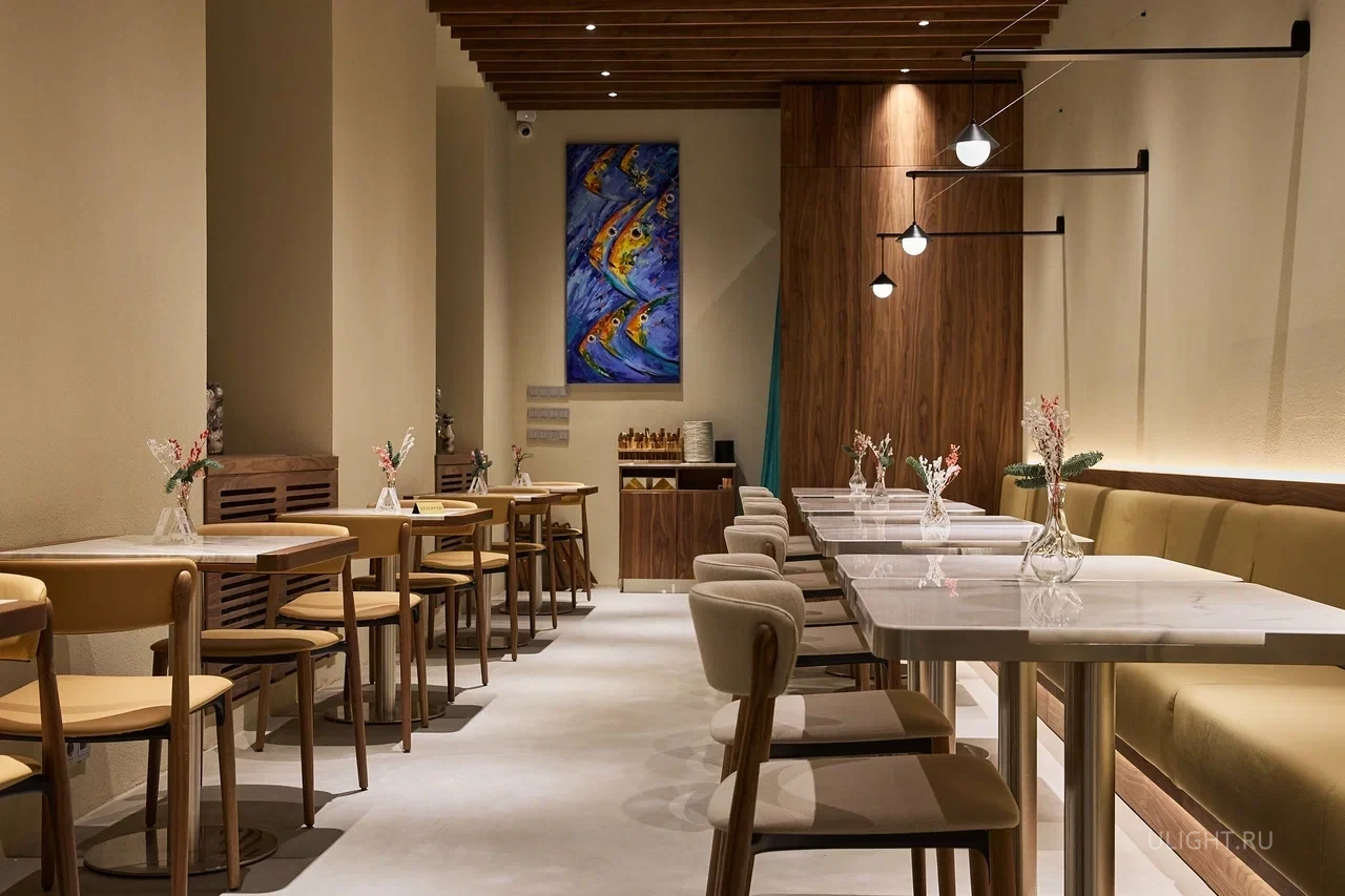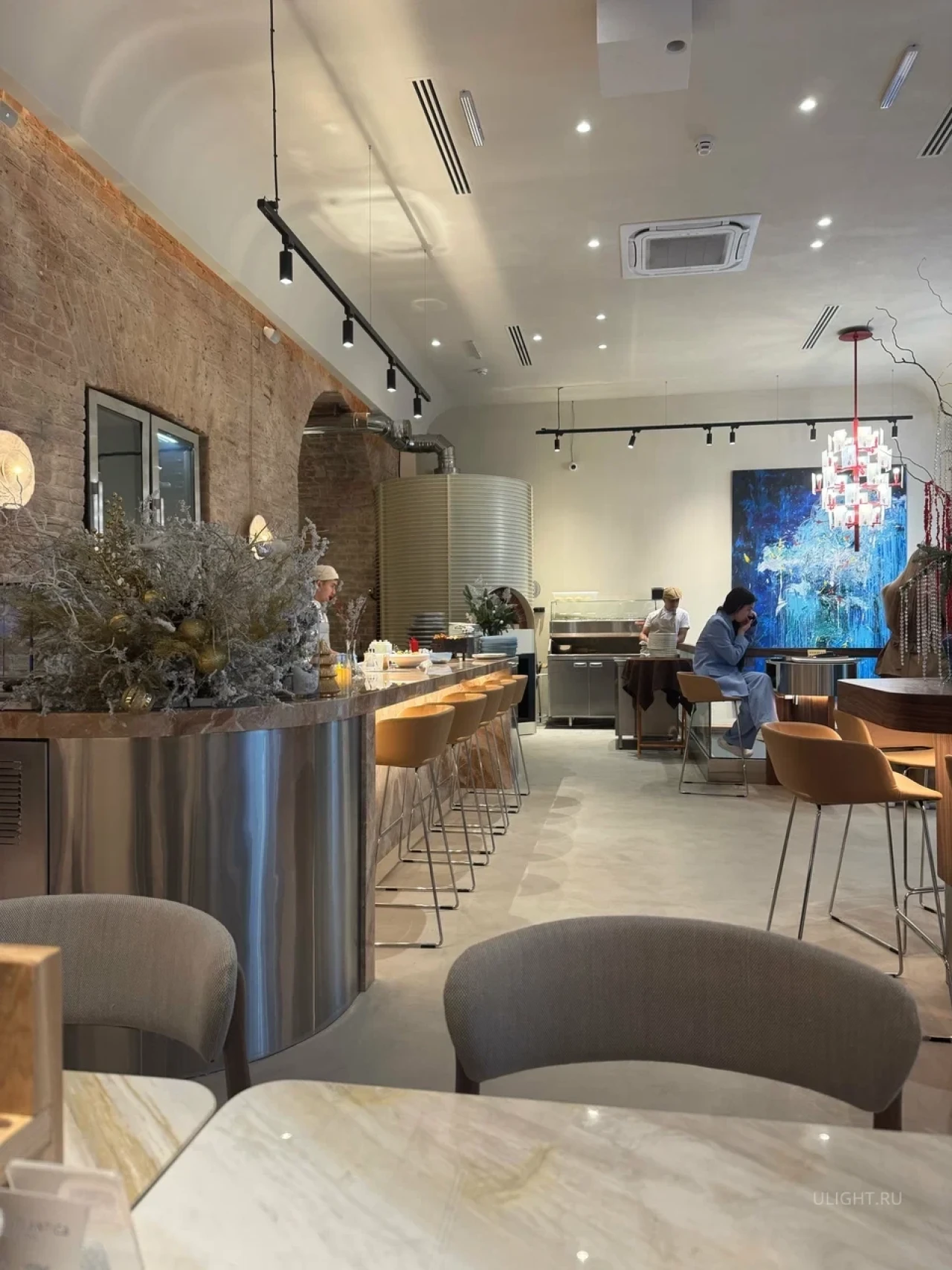 Ключевой задачей светотехнического проекта было создать комфортную, живую и визуально «дорогую» среду без излишнего пафоса — пространство, в котором хочется остаться дольше, несмотря на быстрый формат обслуживания.