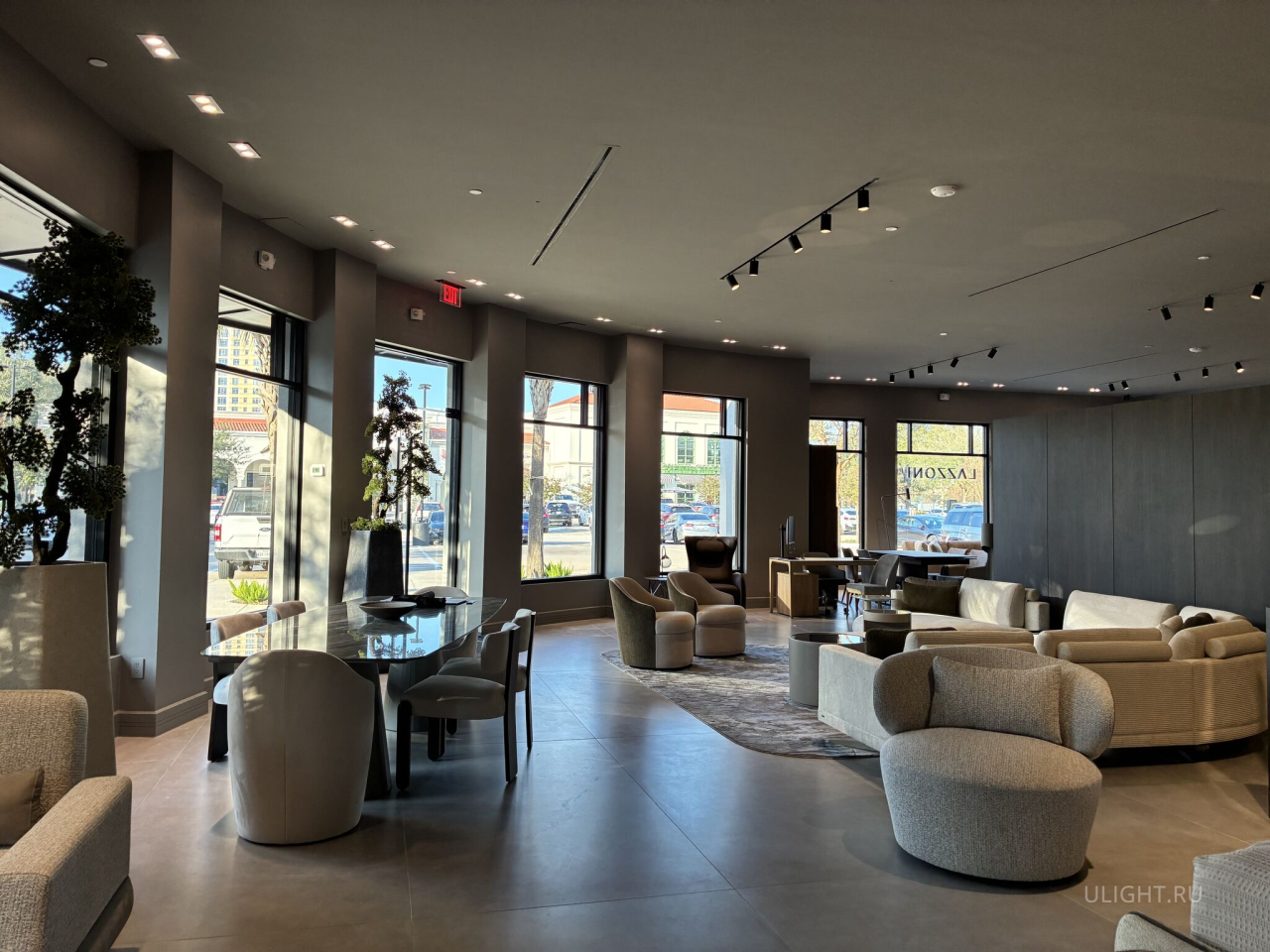 Для шоу-рума LAZZONI в Хьюстоне (США) мы в HOKASU реализовали профессиональное коммерческое освещение. Задача была простой по формулировке и сложной по сути: сделать пространство визуально премиальным, а экспозицию — максимально «читаемой» без пересветов, провалов и дискомфорта для глаз.
